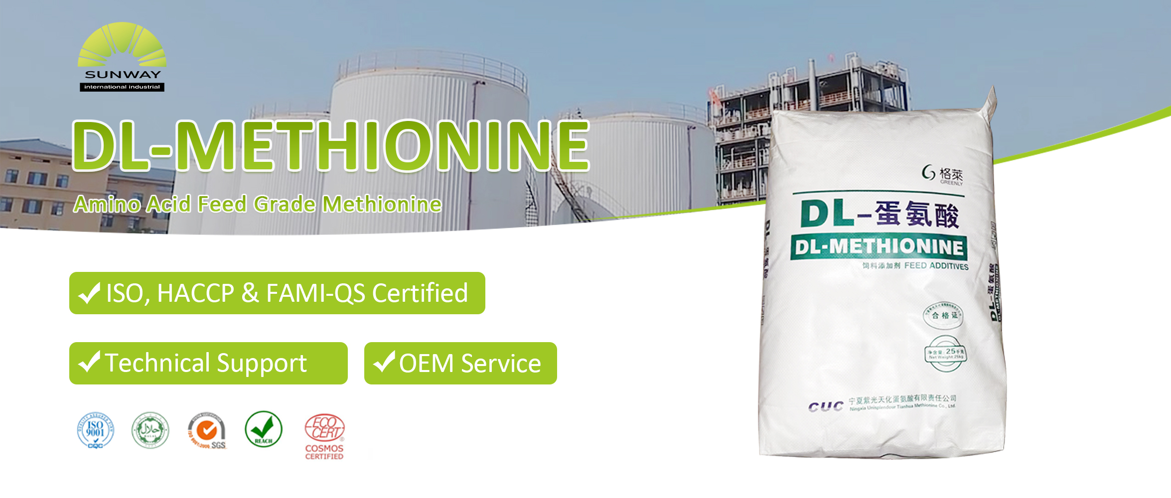 Environmental Impact: High-quality DL-methionine allows low-protein diets, decreases the amount of nitrogen excretion and emissions of ammonia, which reduces the ecological footprint. In other words, it should contribute to a sustainable environment for modern poultry production.